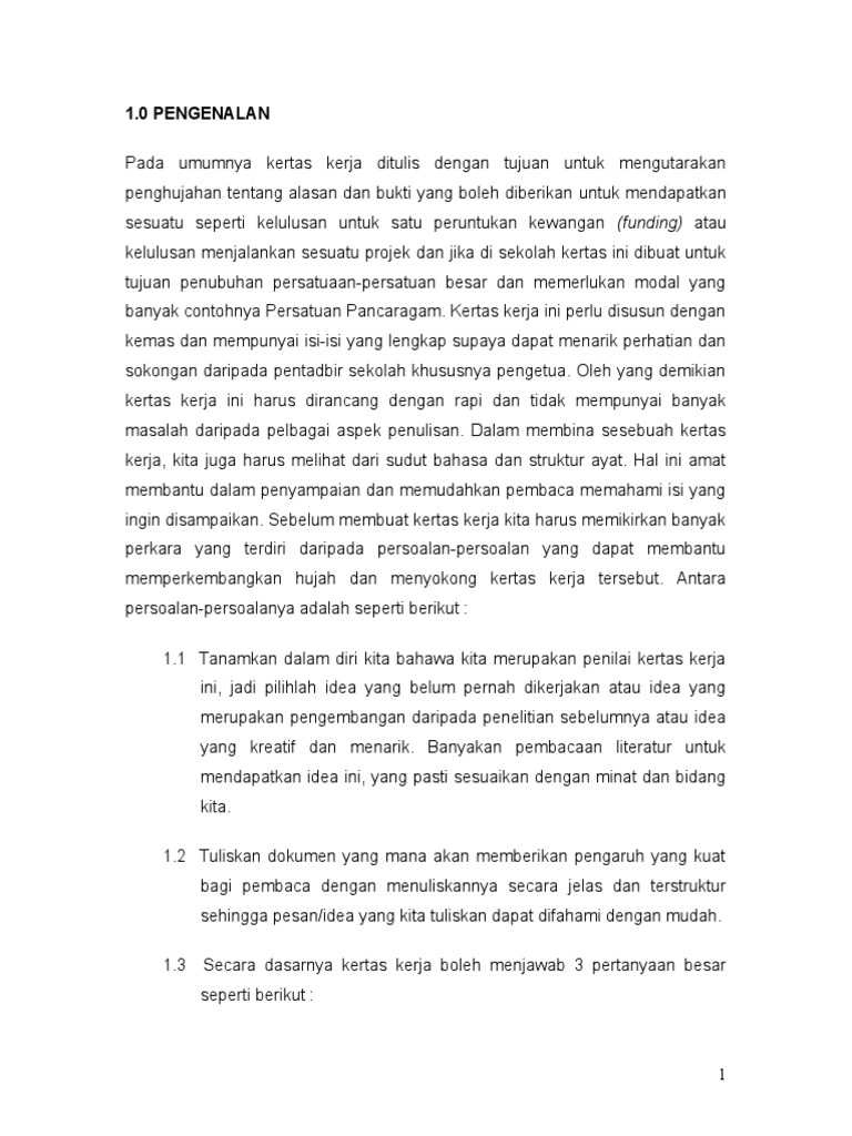 PENUTUP Nyatakan ucapan terima kasih dan memohon untuk pertimbangan dan kelulusan 16. Contoh kertas kerja berikut adalah penting sebagai rujukan anda yang ingin melakukan sesuatu seminar kerja atau projek mengikut format terbaru. Contoh Pengenalan Kerja Kursus Sejarah PT3 2020 PANDUAN buat anda calon Tingkatan 3 PT3 yang ingin menyiapkan tugasan Sejarah PT3 2020.